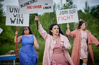 The Tilco Strike, 4th Line Theatre, June 27-July 22nd 2023. Written by D'Arcy Jenish, directed by Cynthia Ashperger. Photos: Wayne Eardley, Brookside Studio. Costume Design Korin Cormier, Set Design Esther Vincent, Fight Director Edward Belanger