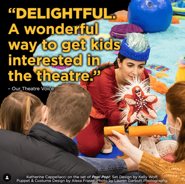 Pop! Pop! Carousel Players 2021-2023. By Linda Carson and Monica Dufault Set Design: Kelly Wolf Puppet & Costume: Alexa Fraser Photo by Lauren Garbutt